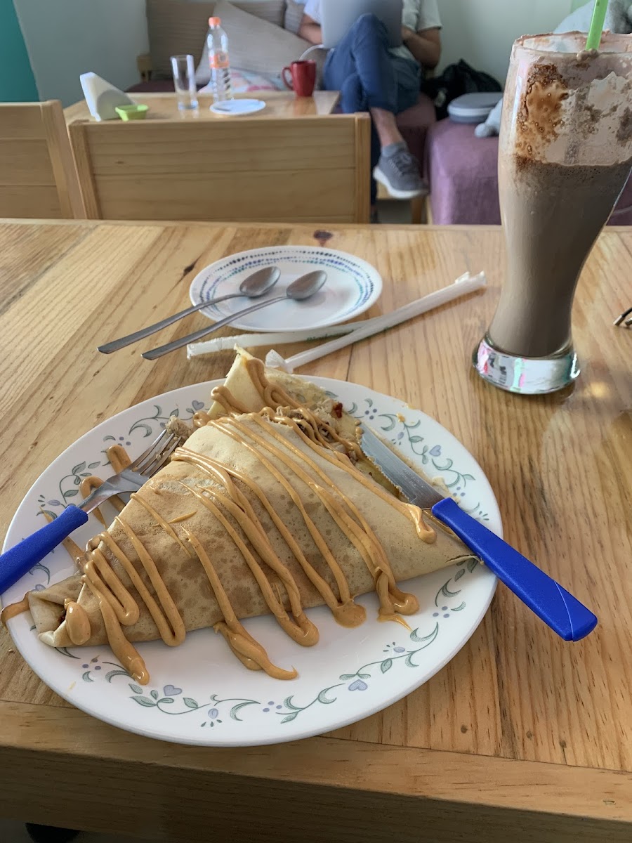 Here, the aroma of freshly brewed coffee mingles with the enticing scent of warm crepes and delectable brownies, making it impossible not to be tempted. The café's menu offers a mouthwatering selection of crepes that are as filling as they are flavorful—perfect for a leisurely brunch or an afternoon treat. Whether you opt for a classic sweet crepe or something more innovative, you'll be treated to a culinary experience that delights the palate.